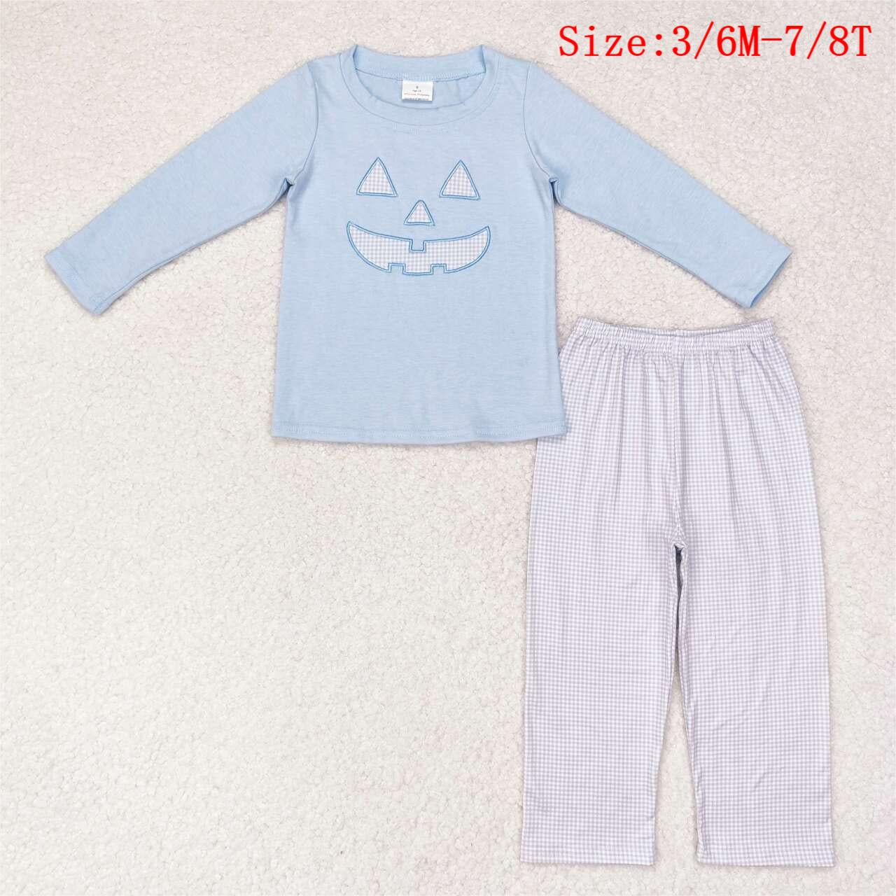 BLP0562 Halloween Ghost Face Embroidery Top Plaid Pants Boys Halloween Clothes Set