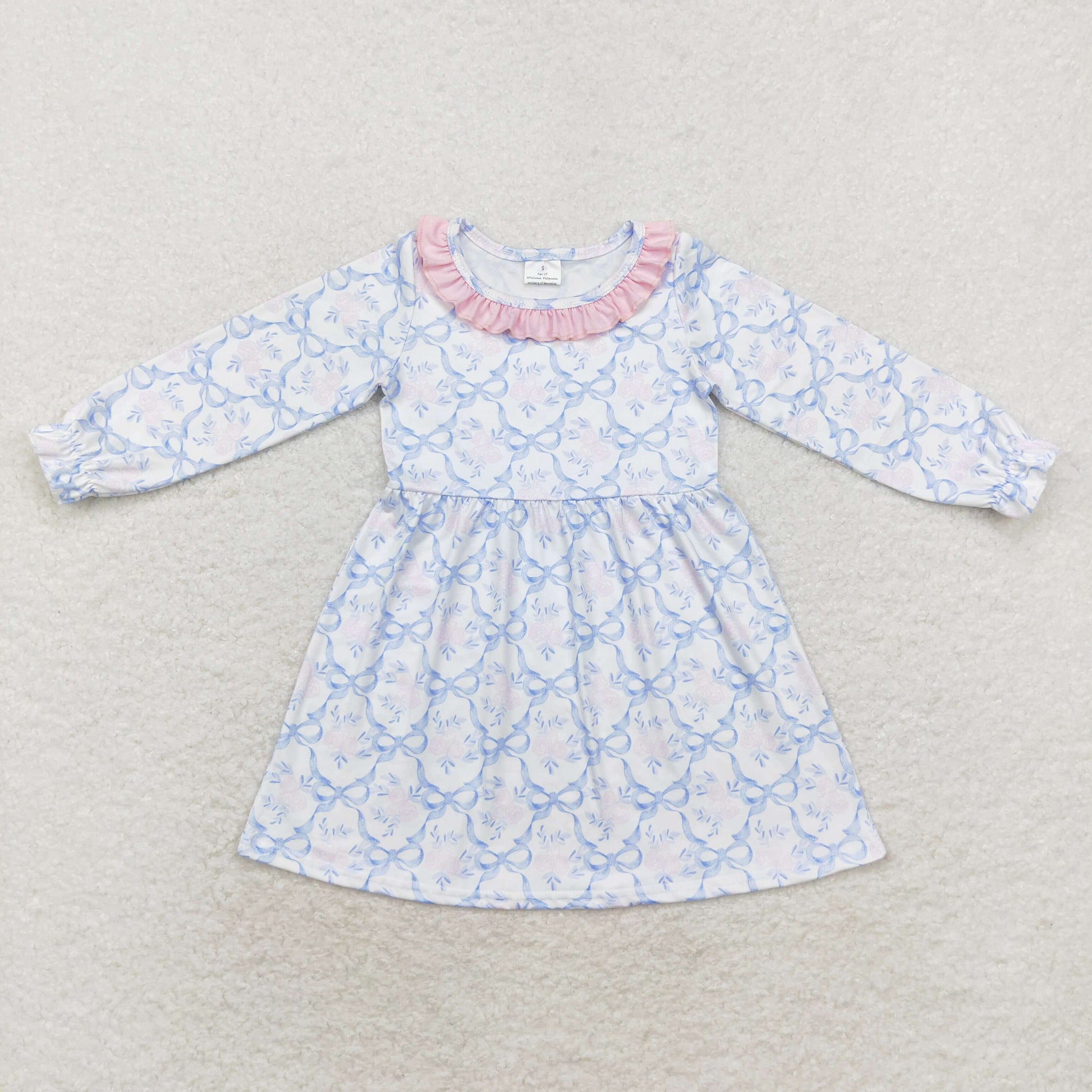 Blue Bows Pink Flowers Print Sisters Matching Clothes