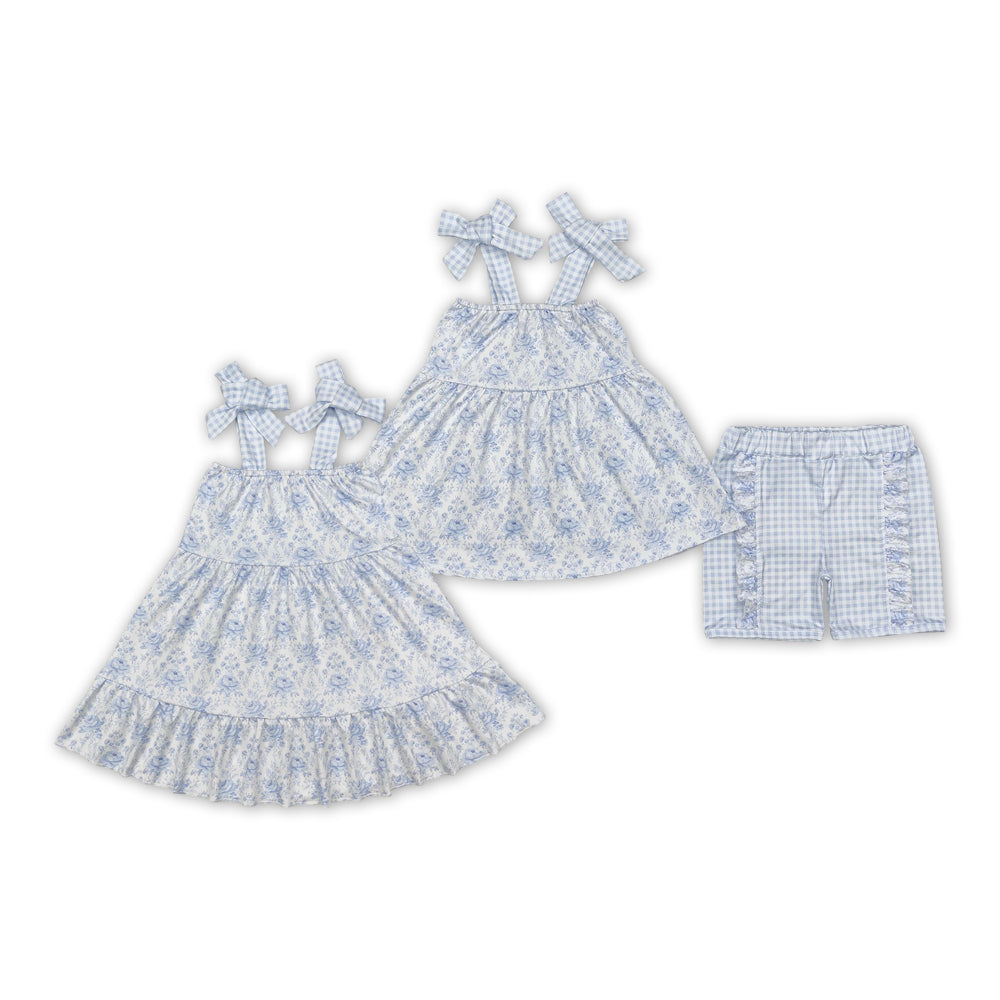 Blue Flowers Print Sisters Summer Matching Clothes