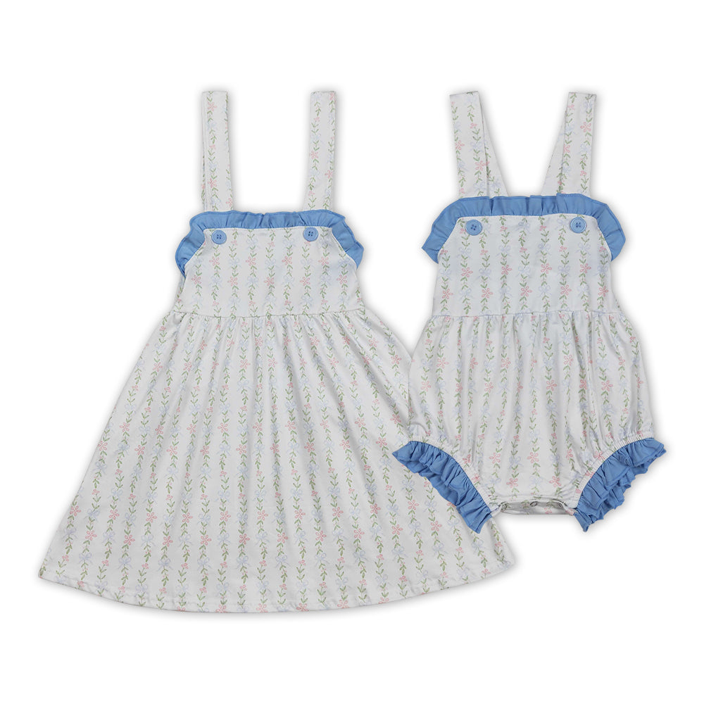 Blue Small Flowers Print Sisters Summer Matching Clothes