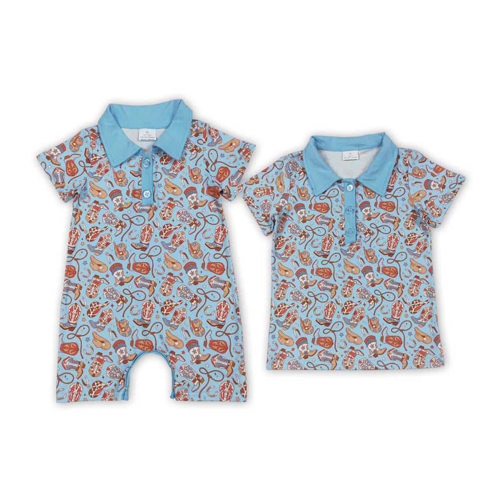 Boots Hat Blue Print Boys Western Summer Matching Clothes