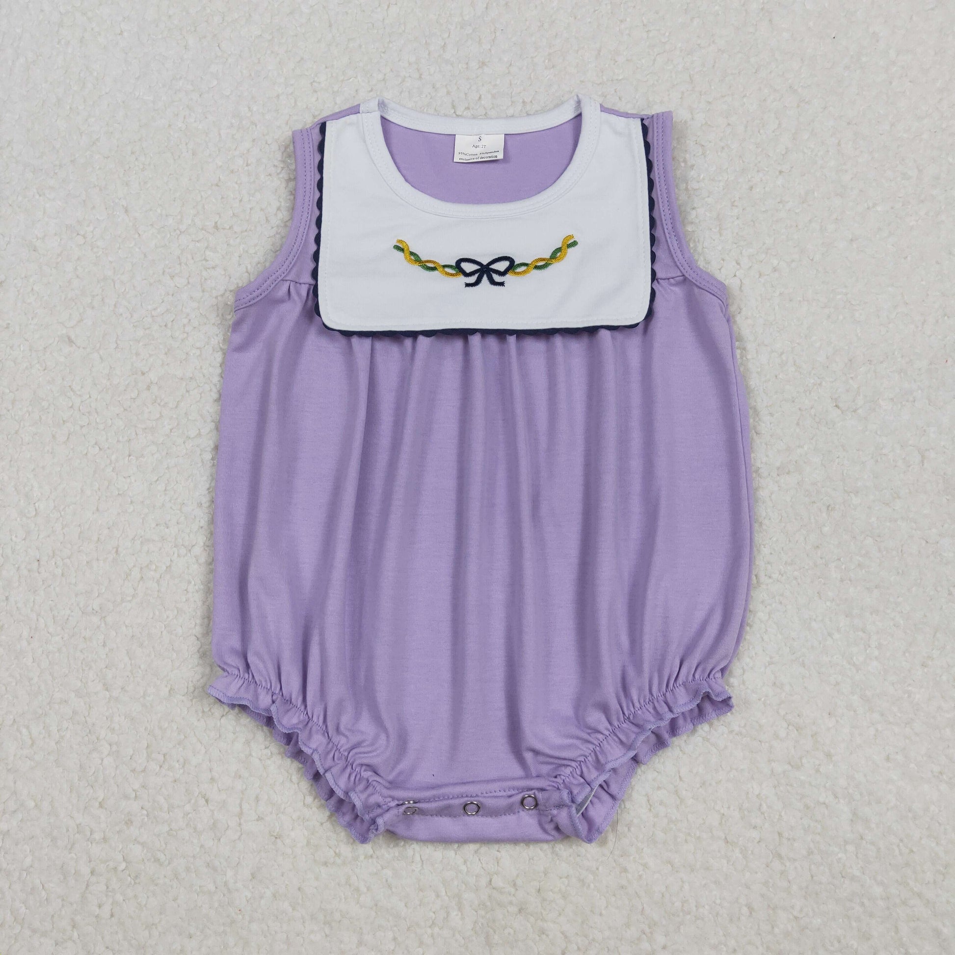 Bow Embroidery Purple Girls Mardi Gras Clothes Sisters Matching Wear