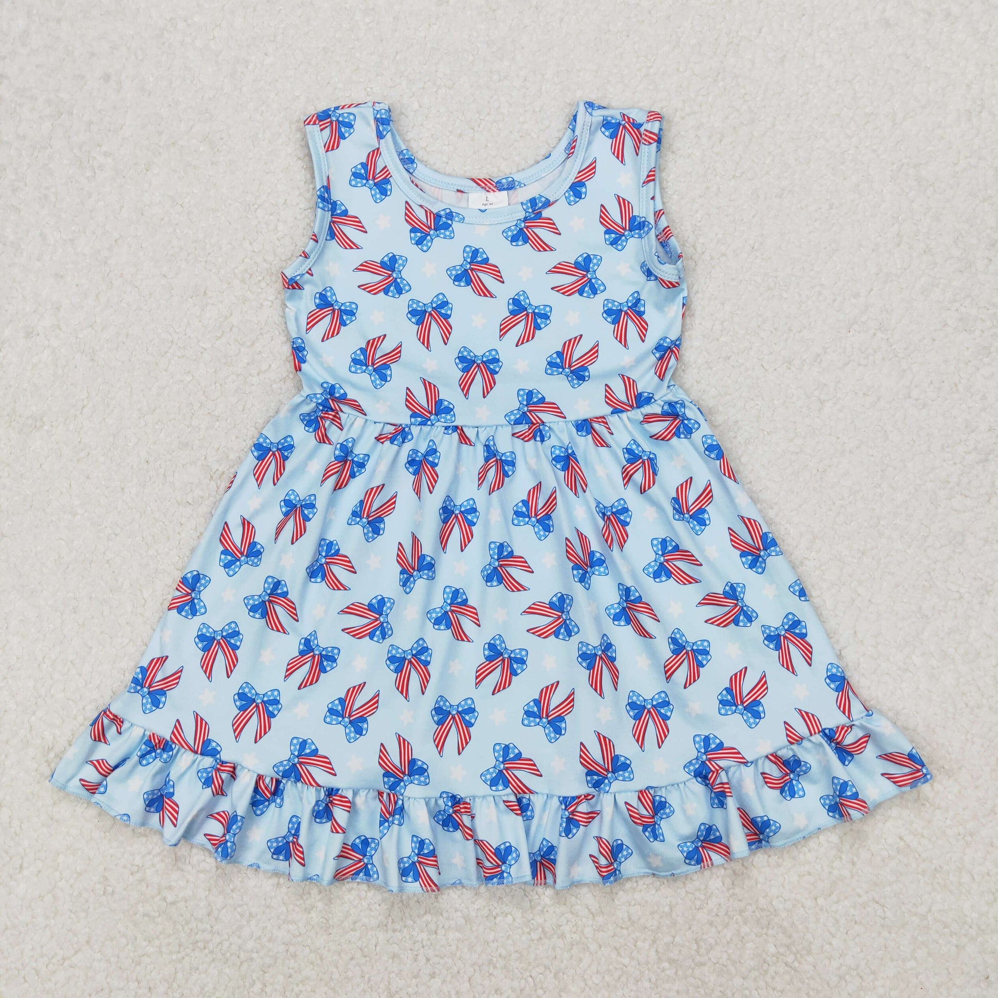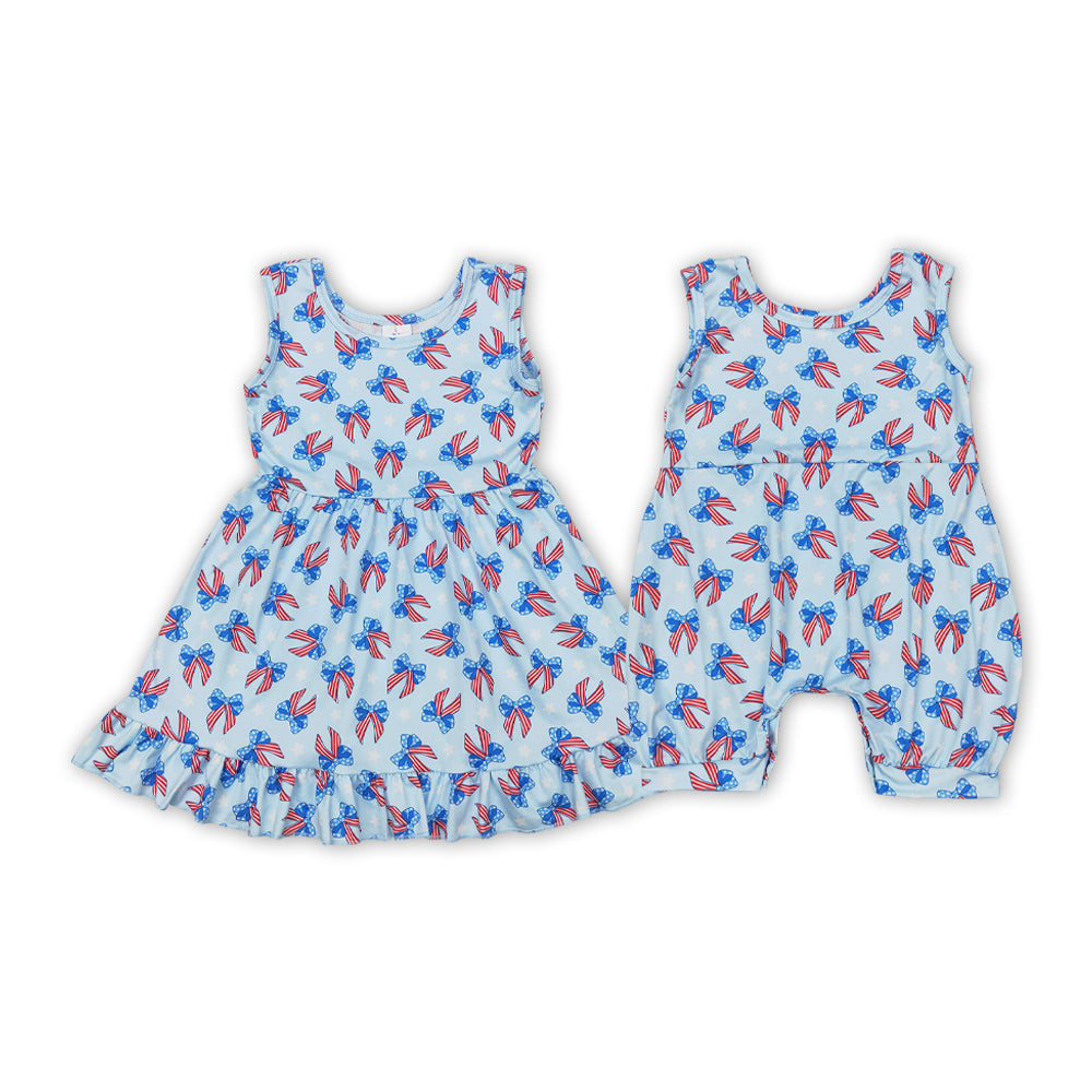 Bows Stars Print Sisters Sleeveless 4th of July Clothes Sisters Wear