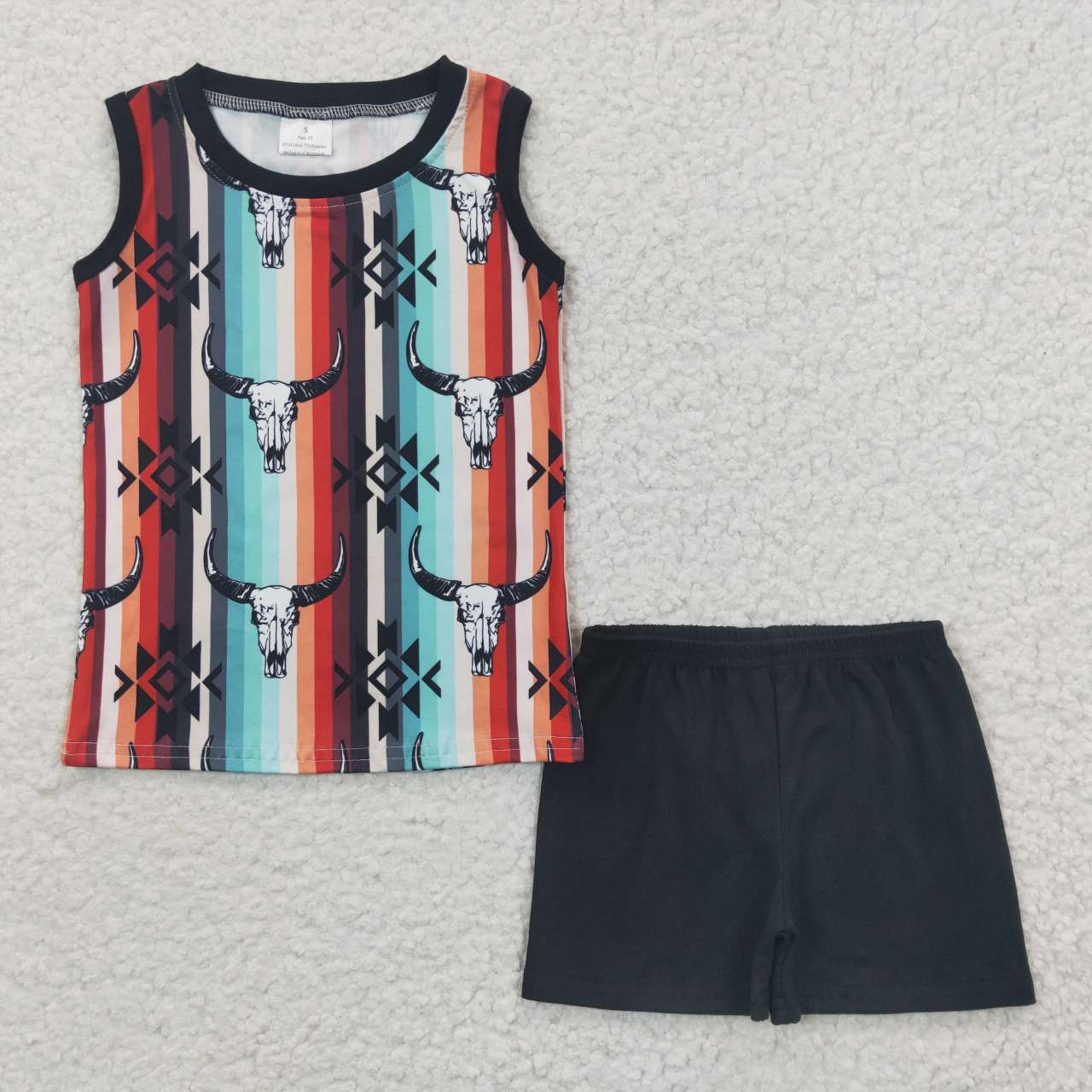 Boys sleeveless cow skull aztec western summer outfits BSSO0216