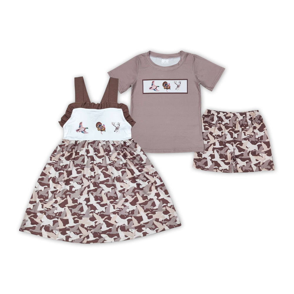Brown Duck Turkey Deer Print Sibling Summer Hunting Matching Clothes