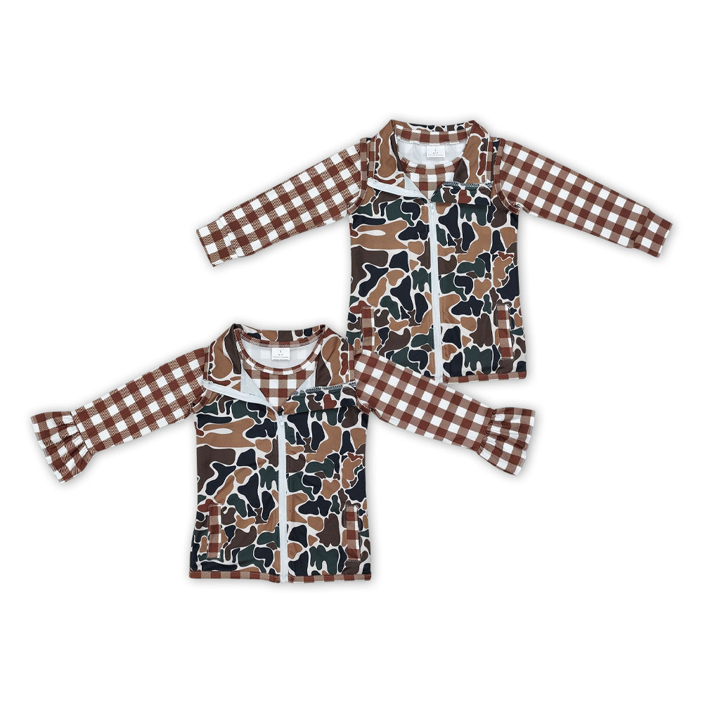 Brown Plaid Camo Print Vest Sibling Matching Clothes