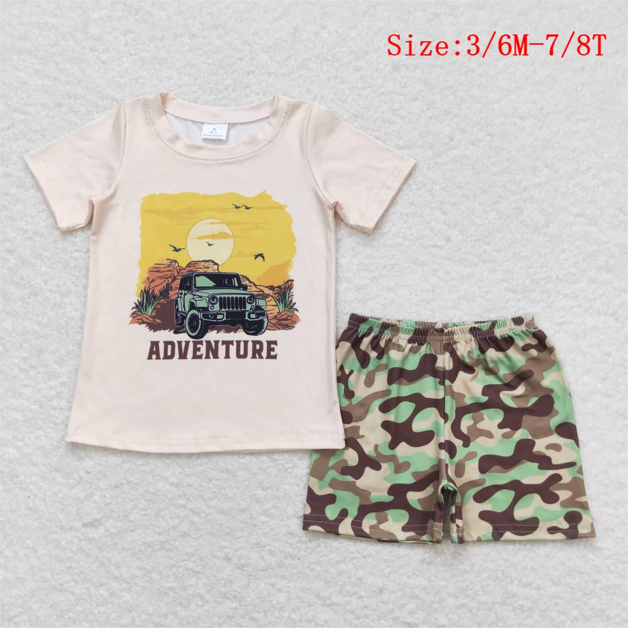 BSSO0314 Adventure Jeep Top Camo Shorts Boys Summer Clothes Set
