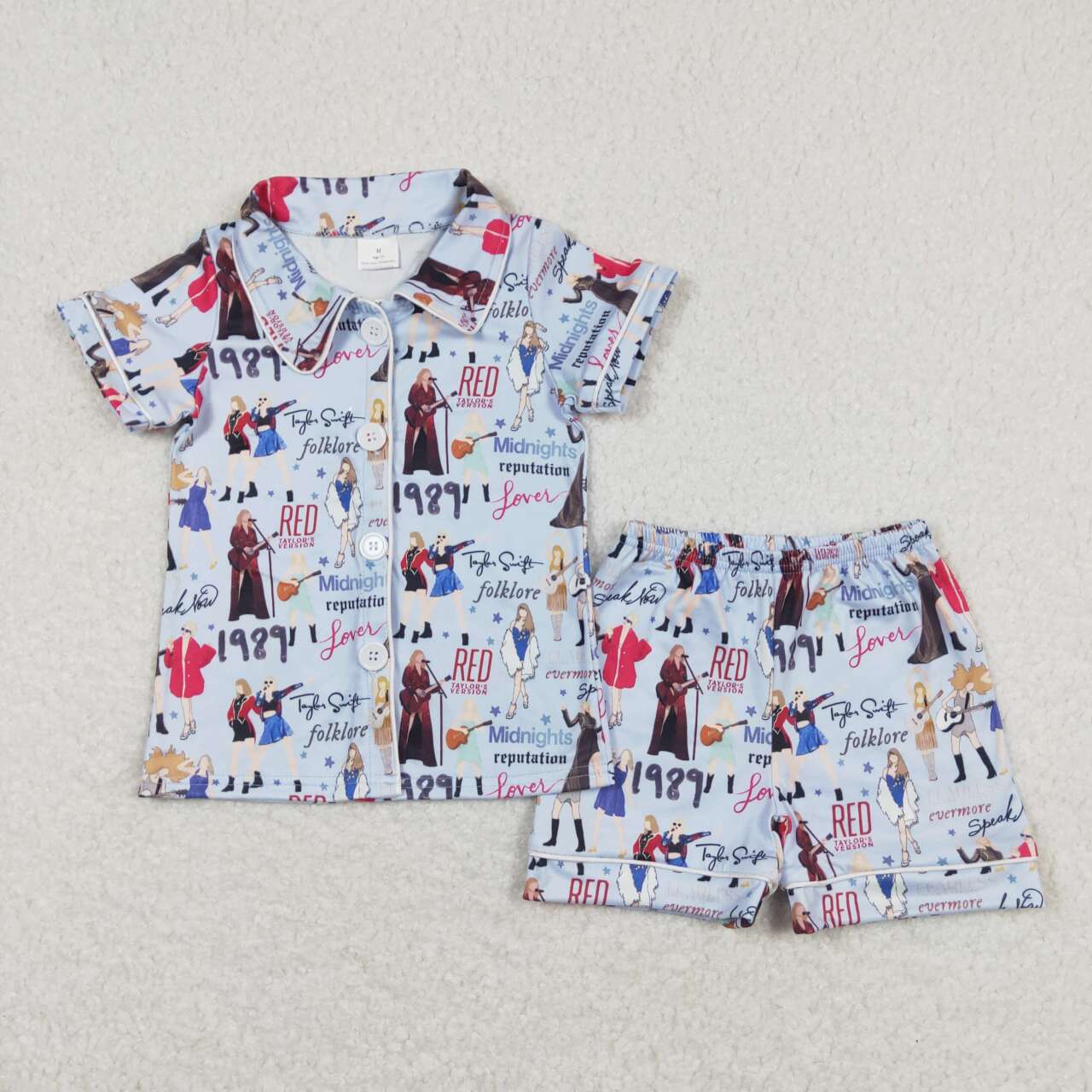 BSSO0545 Singer Swiftie Blue Print Girls Summer Pajamas Clothes Set