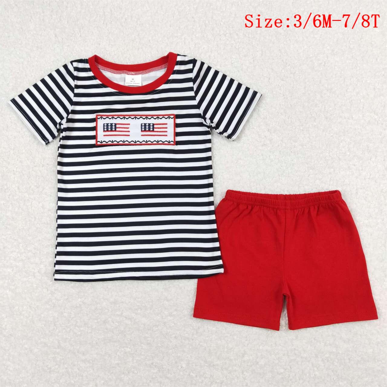 BSSO0565 Flags Embroidery Stripes Top Red Shorts Boys 4th of July Clothes Set