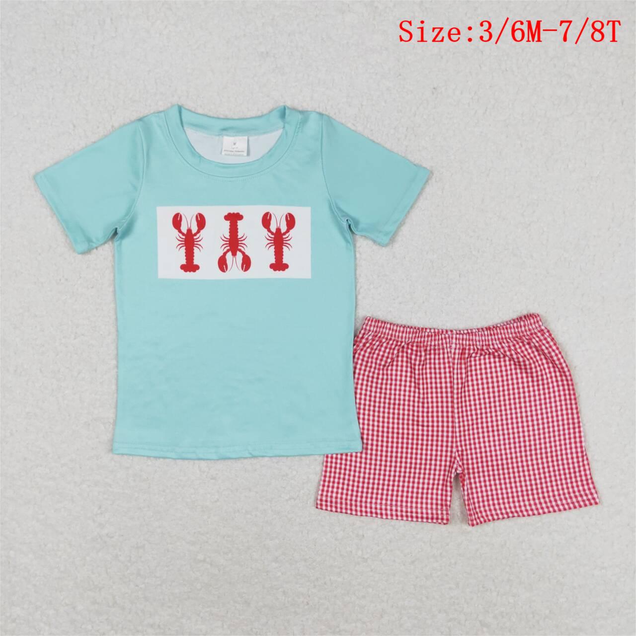 BSSO0597 Crayfish Aqua Top Plaid Shorts Boys Summer Clothes Set
