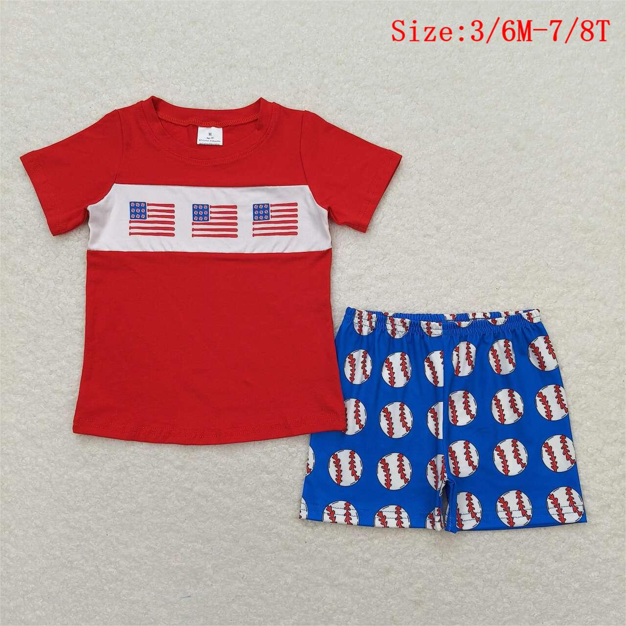 BSSO0674 Flags Red Top Baseball Shorts Boys 4th of July Clothes Set