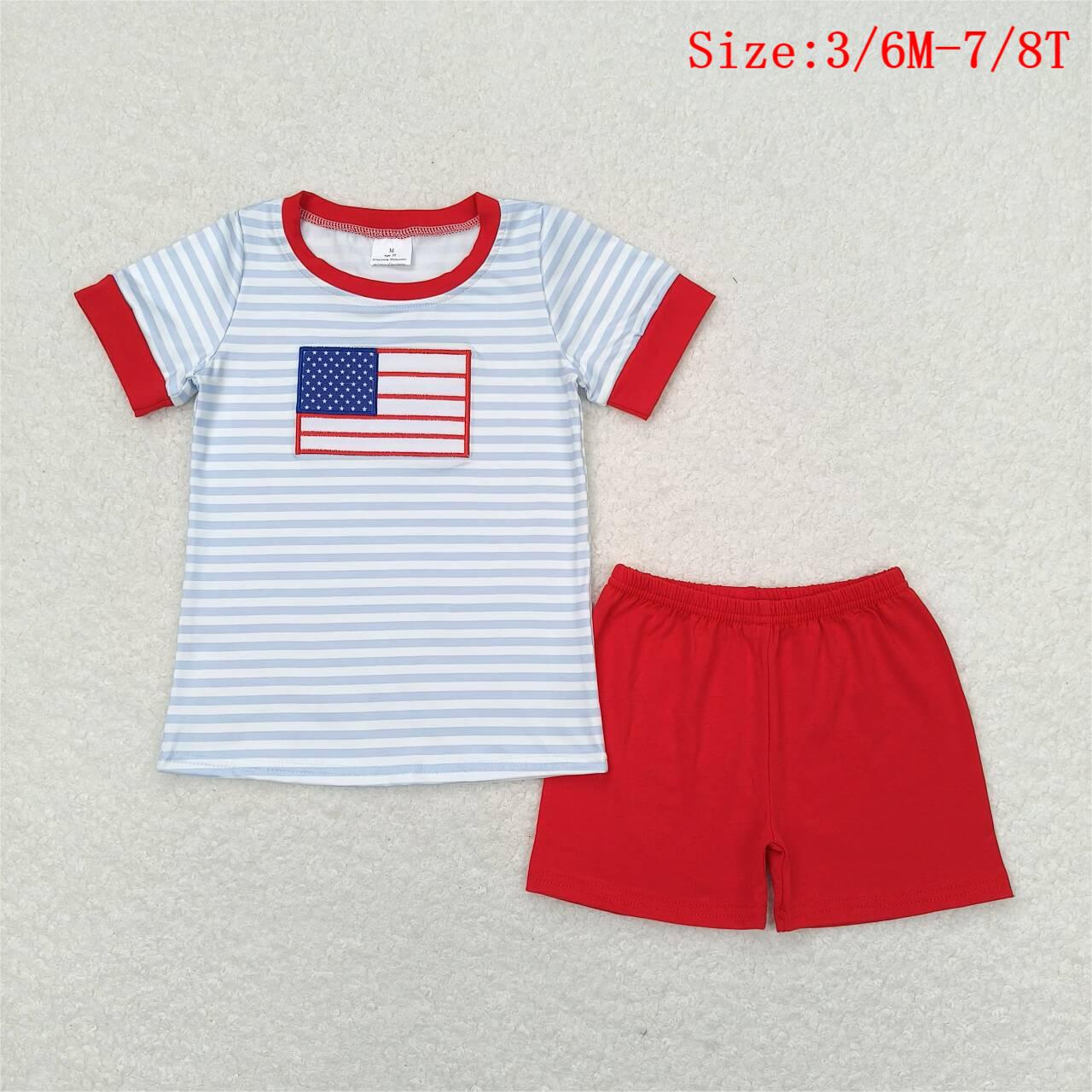 BSSO0684 Flag Embroidery Top Red Shorts Boys 4th of July Clothes Set