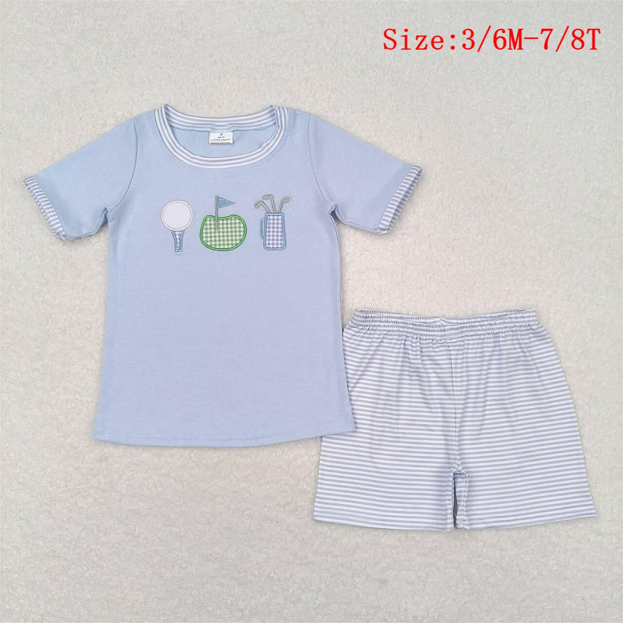 BSSO0686 Golf Embroidery Top Stripes Shorts Boys Summer Clothes Set