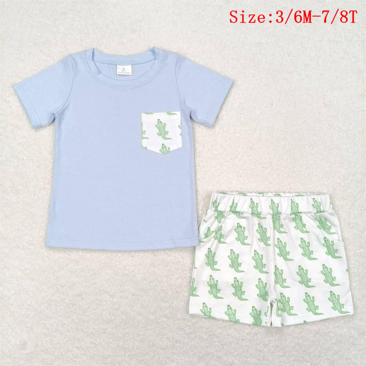 BSSO0782 Blue Pocket Top Crocodile Shorts Boys Summer Clothes Set