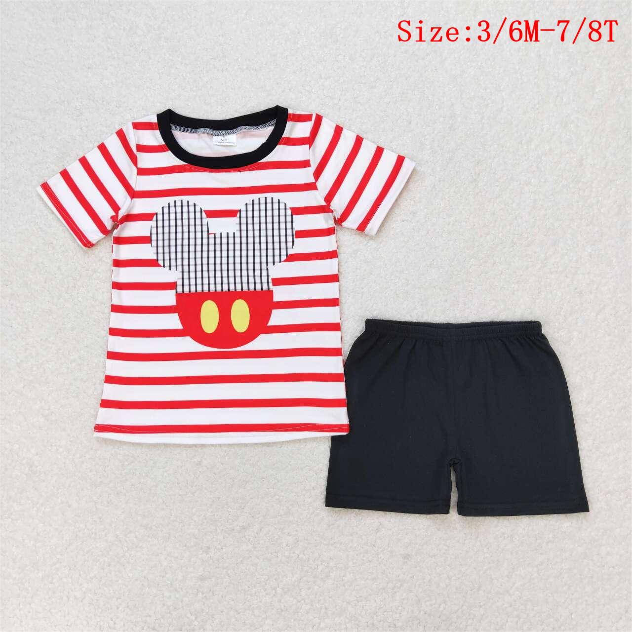 BSSO0801 Cartoon Mouse Top Black Shorts Boys Summer Clothes Set