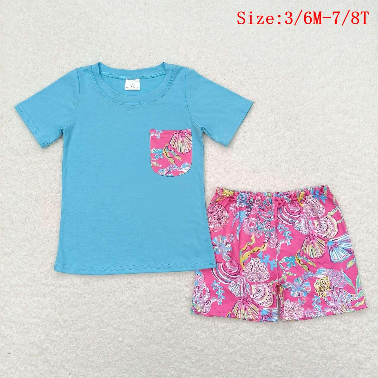 BSSO0841 Blue Pocket Top Shell Seaweed Shorts Boys Summer Clothes Set
