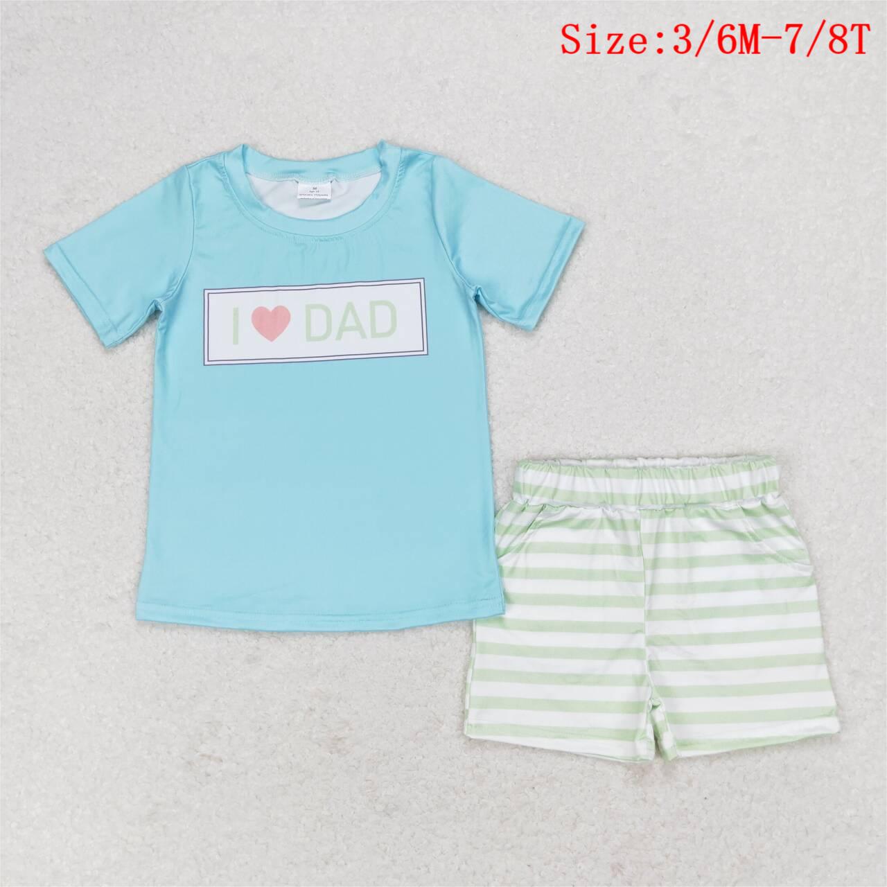 BSSO0878 I LOVE DAD Blue Top Stripes Shorts Boys Summer Clothes Set