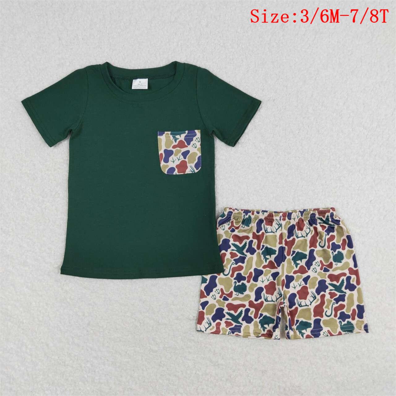 BSSO0923 Green Pocket Top Camo Hunting Shorts Boys Summer Clothes Set