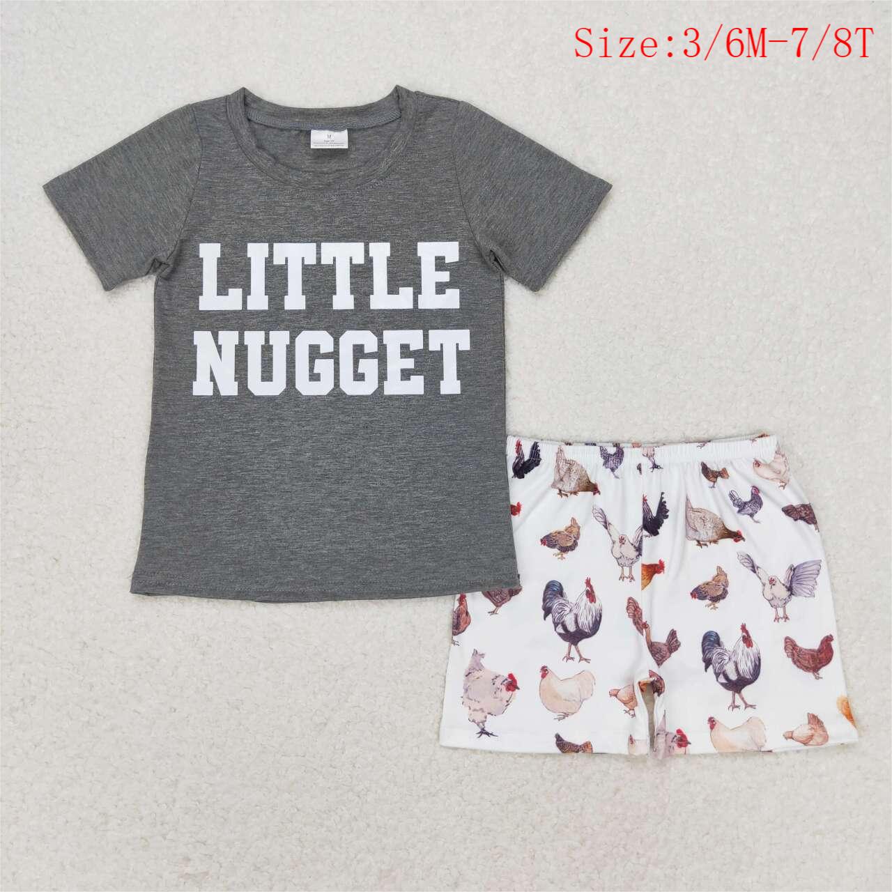 BSSO0943 Little Nugget Vinyl Grey Top Chicken Shorts Boys Summer Clothes Set