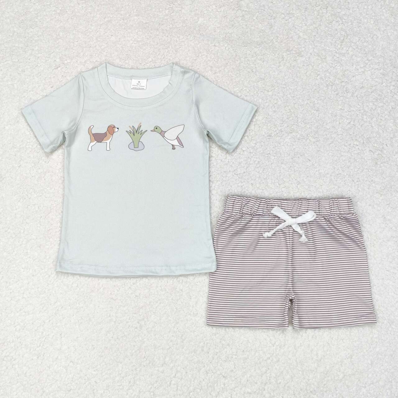 BSSO0980 Duck Dog Print Boys Summer Clothes Set