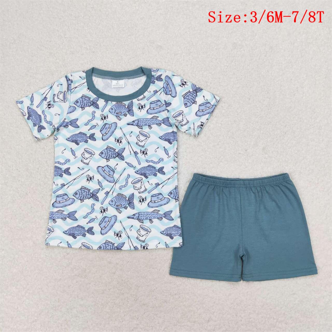 BSSO0994 Fishing Top Dark Blue Shorts Boys Summer Clothes Set