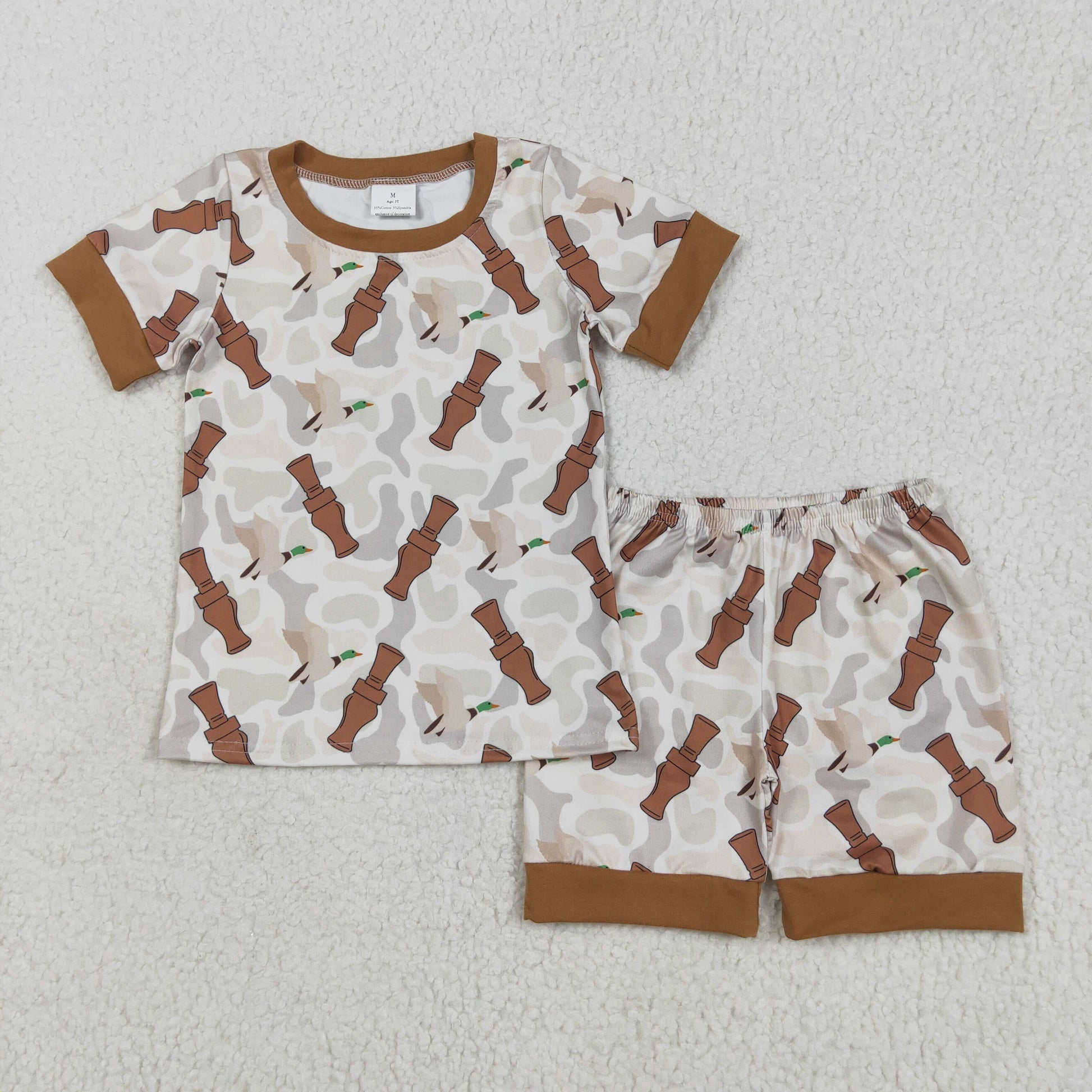 BSSO1324 Duck Call Camo Print Shorts Boys Summer Pajamas Clothes Set