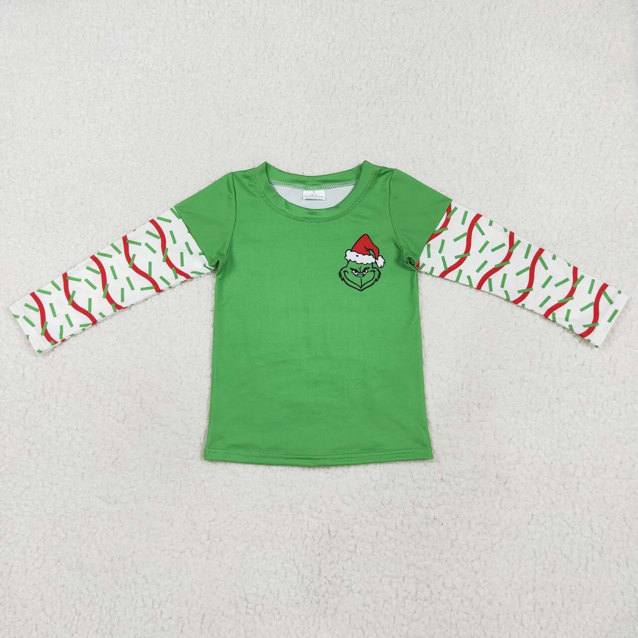 BT0770 Green Frog Print Boys Chistmas Tee Shirts Top