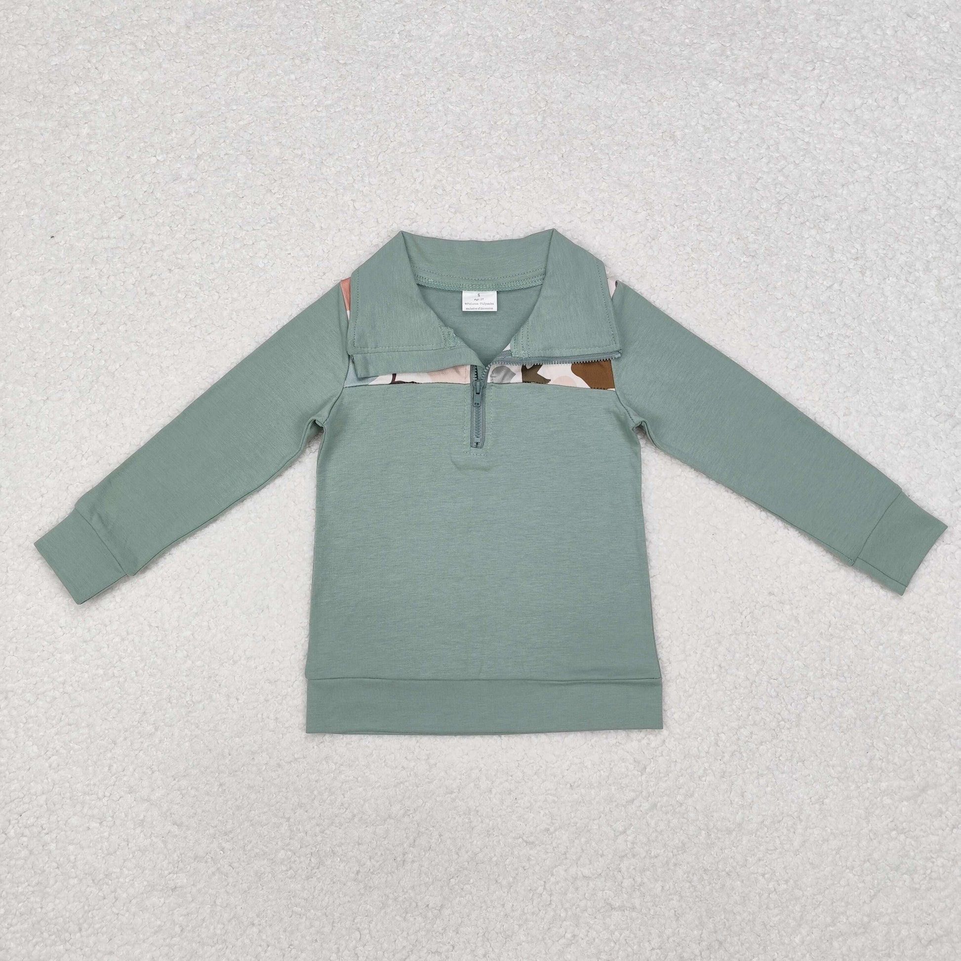 BT0796 Camo Dog Duck Hunting Print Boys Fall Pullover Zipper Tee Shirts Top
