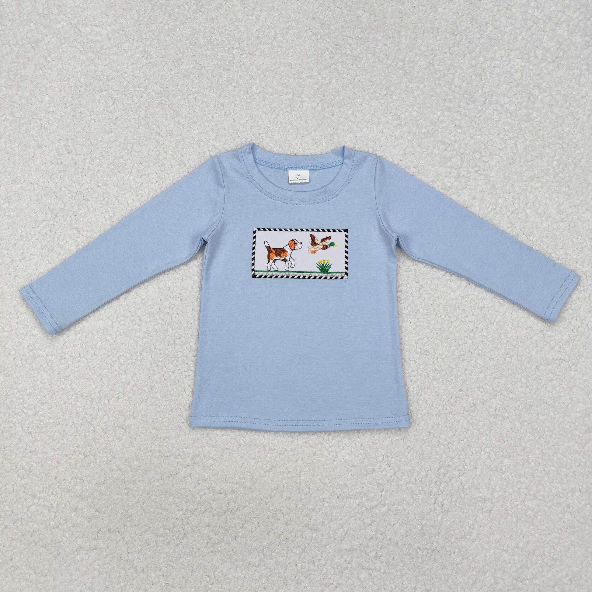BT1007 Dog Duck Embroidery Blue Color Boy Fall Hunting Tee Shirts Top