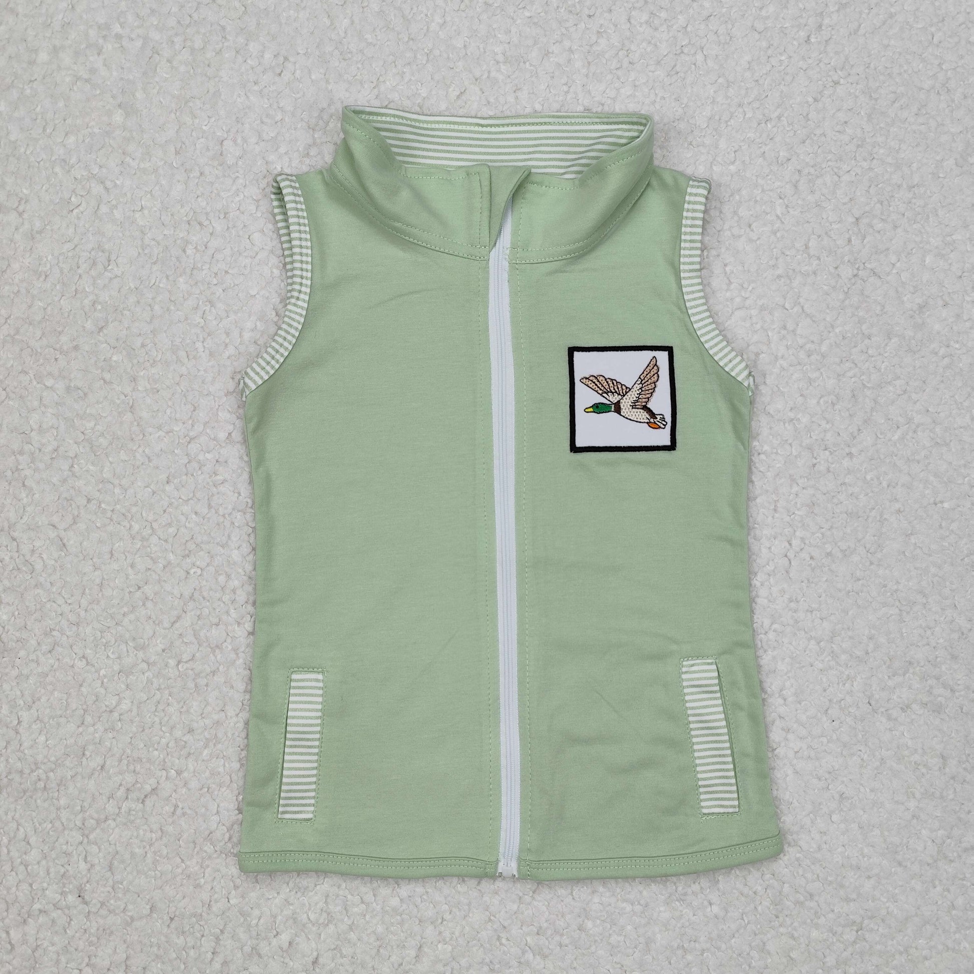 BT1071 Duck Embroidery Print Pockets Boys Sleeveless Vest Zipper Jacket Top