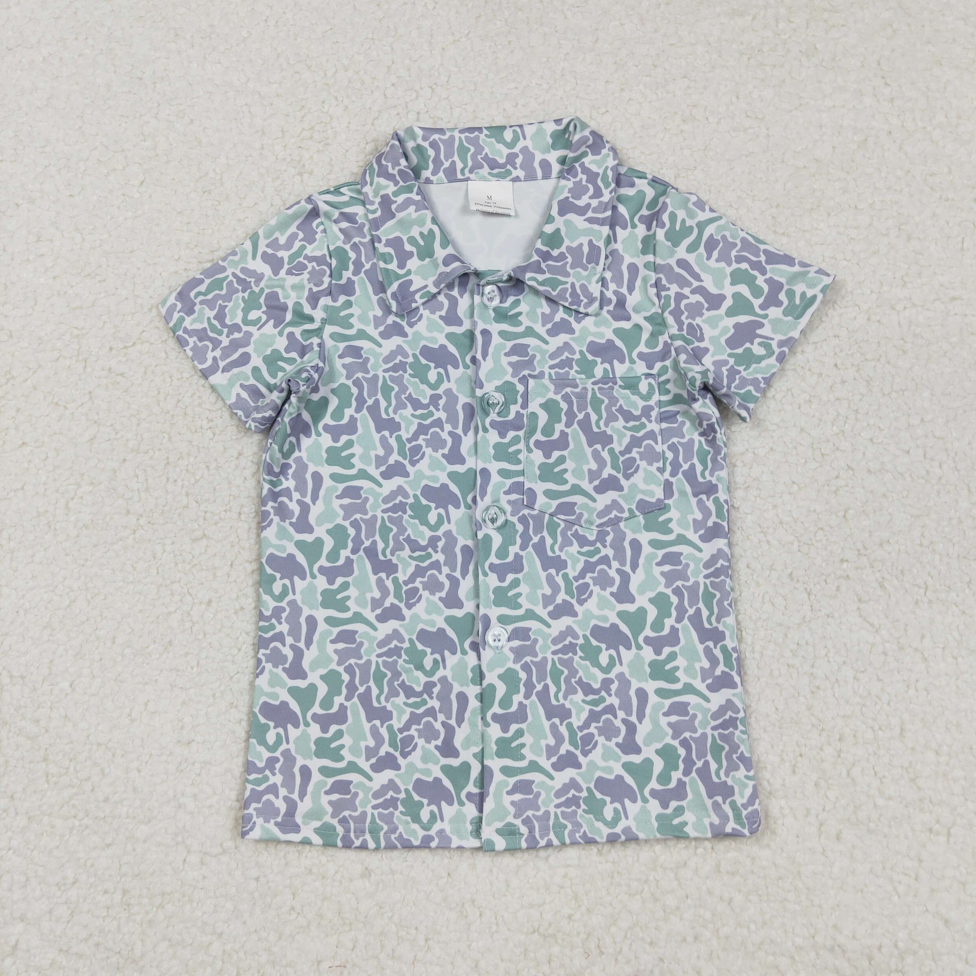 BT1295 Green Purple Camo Print Boys Summer Tee Shirts Top