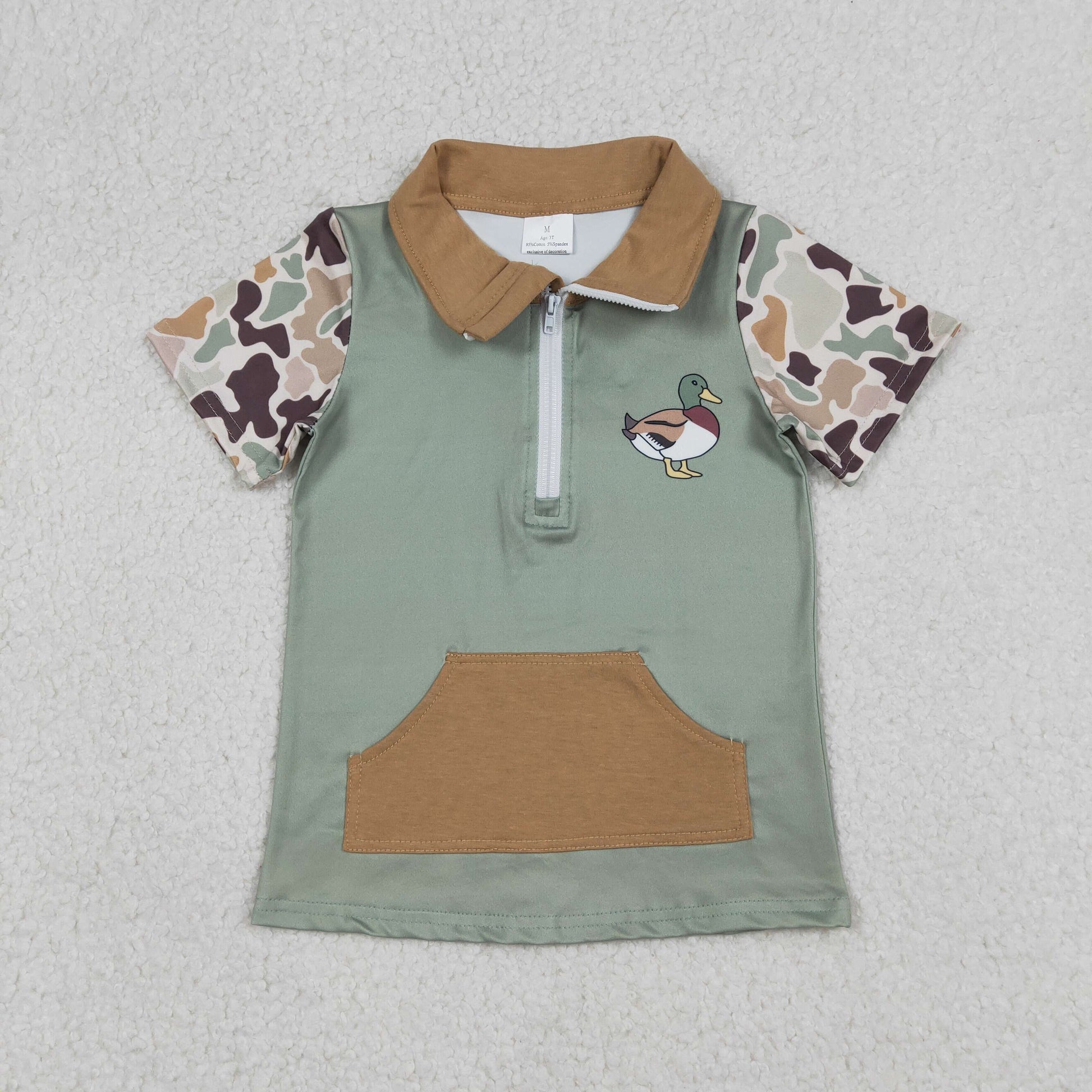 BT1530 Duck Camo Print Boys Short Sleeve Zipper Pullover Top