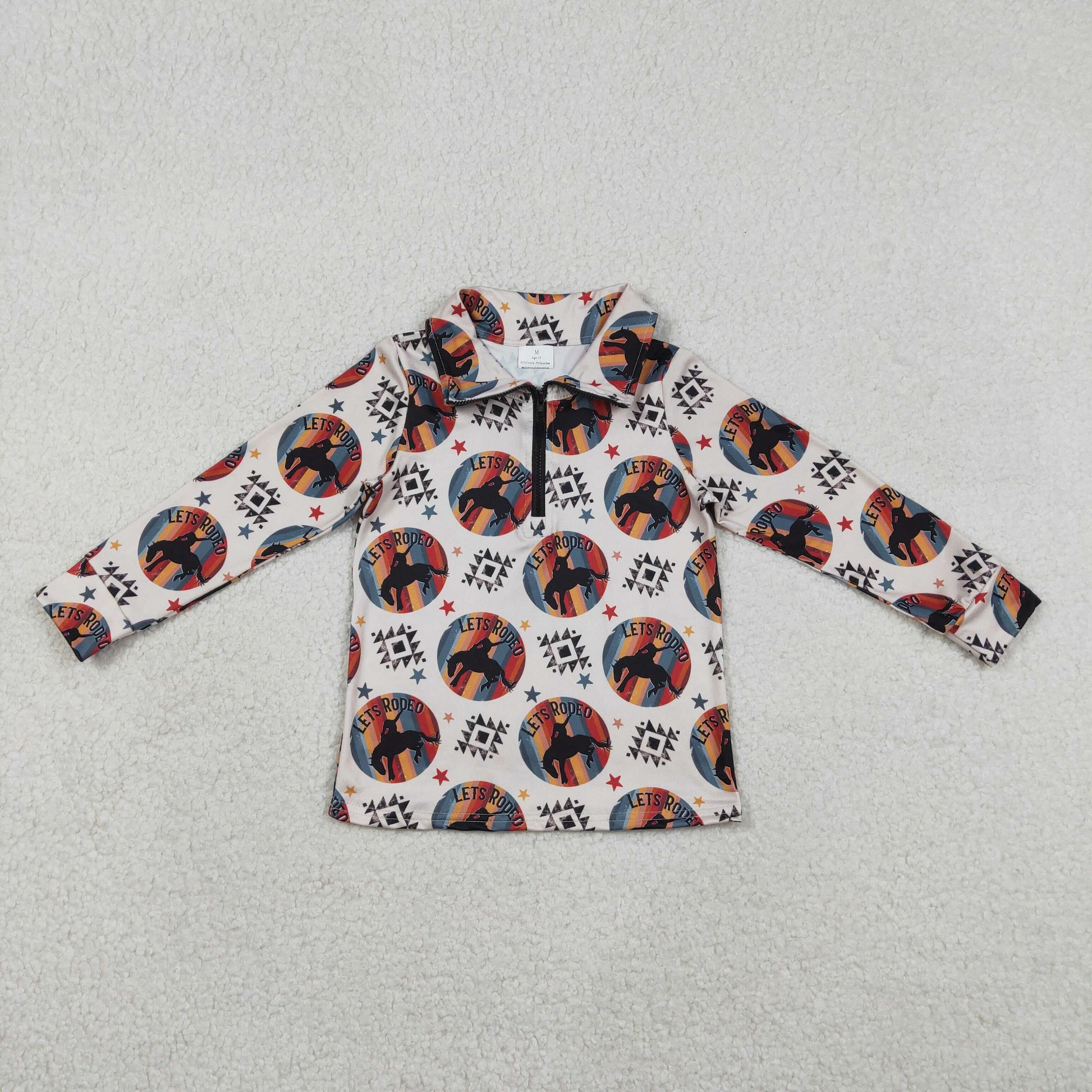 BT1598 Rodeo Aztec Print Boys Western Zipper Pullover Top