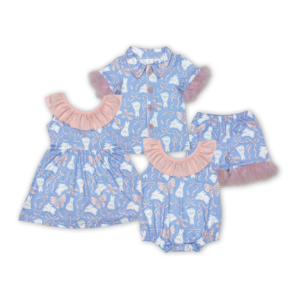 Bunny Bows Blue Print Sisters Easter Matching Clothes