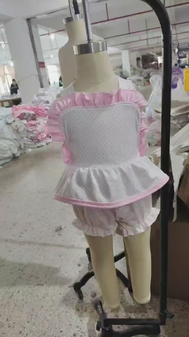 Bunny Embroidery Dots Pink Girls Easter Matching Clothes Sisters Wear
