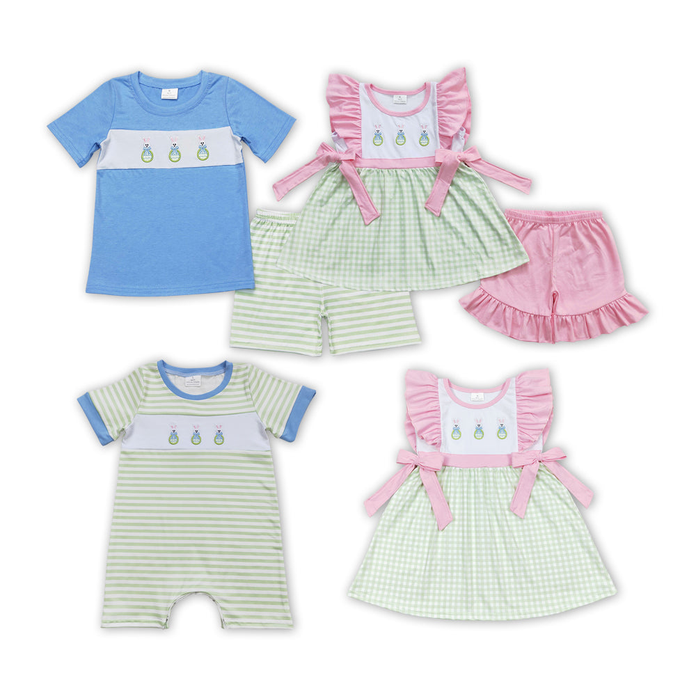 Bunny Embroidery Green Plaid Print Sibling Easter Matching Clothes