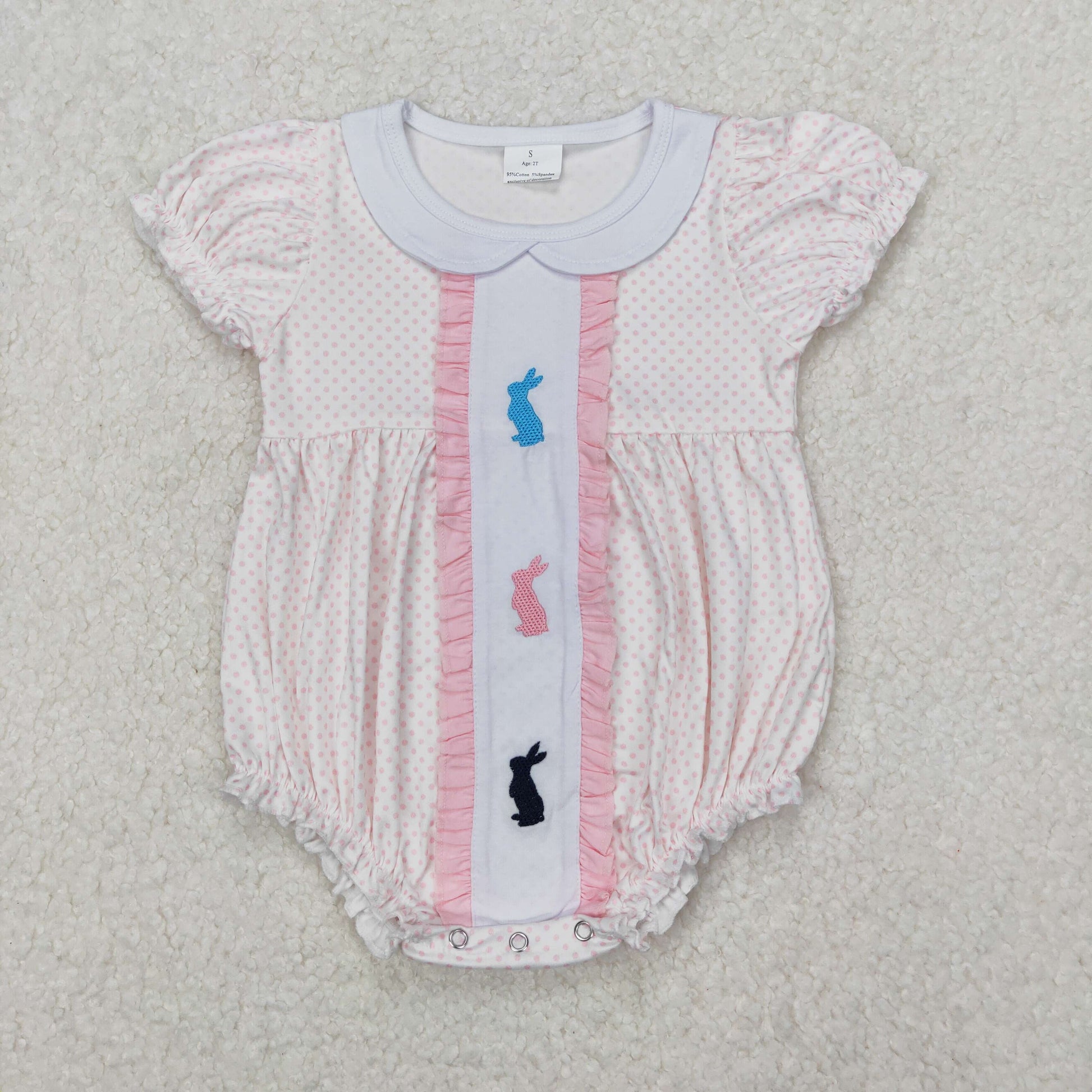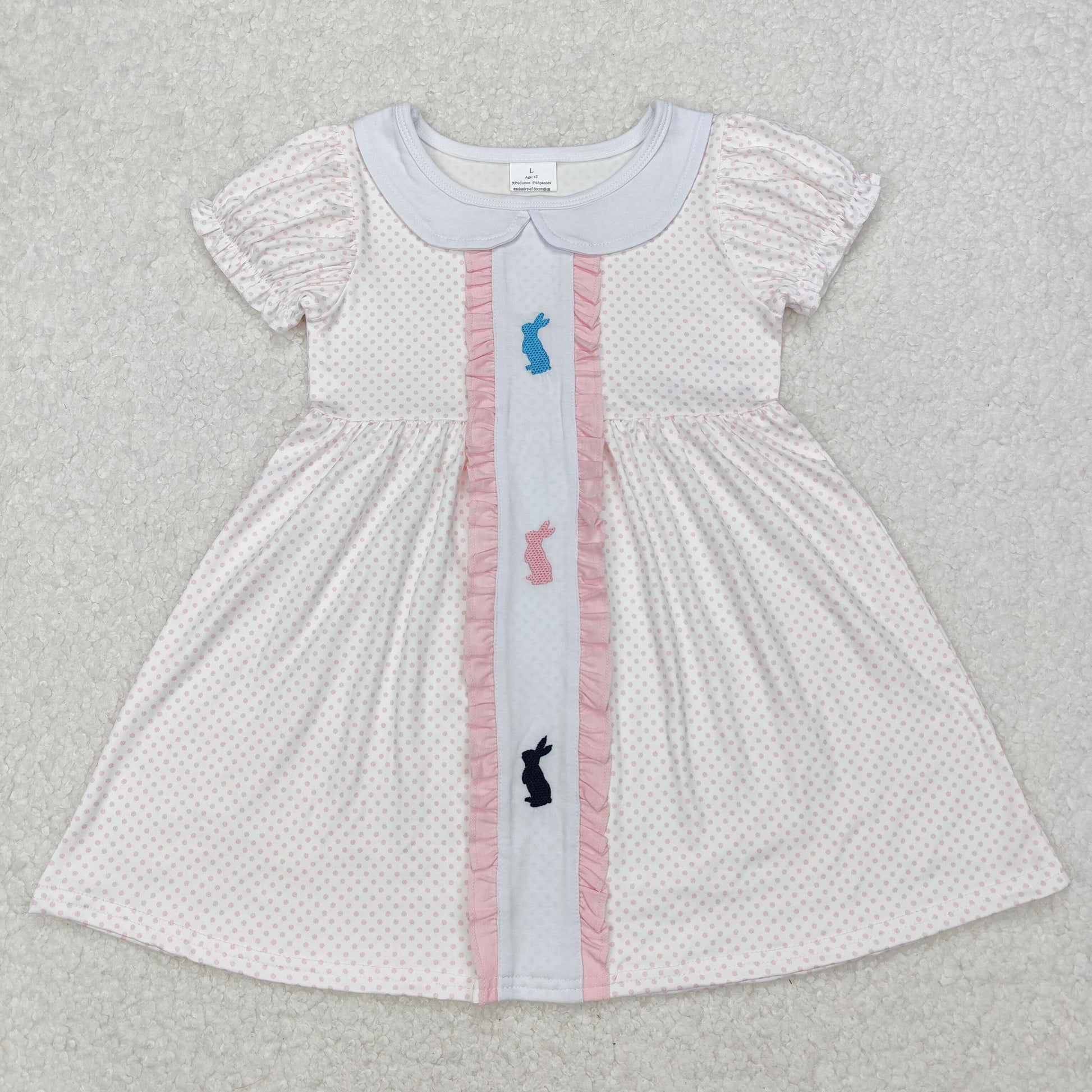 Bunny Embroidery Pink Dots Print Sisters Easter Matching Clothes