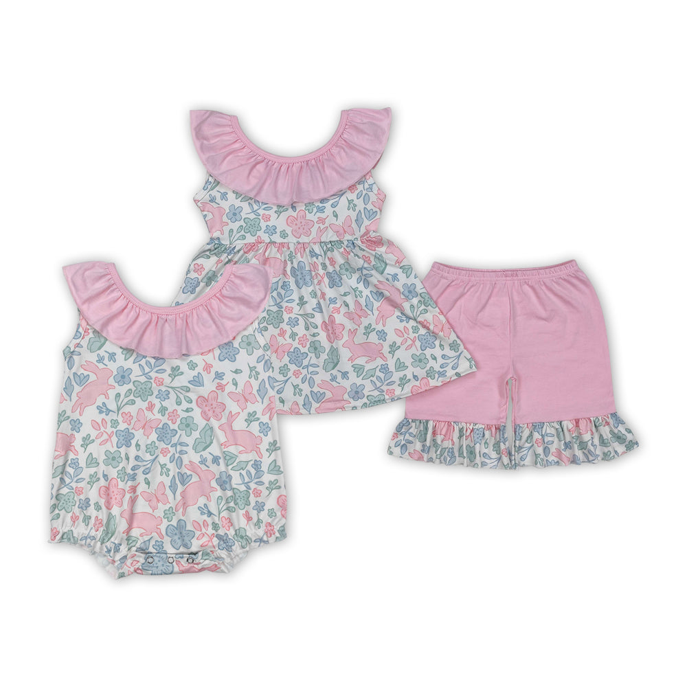 Bunny Flowers Pink Print Sisters Easter Matching Clothes