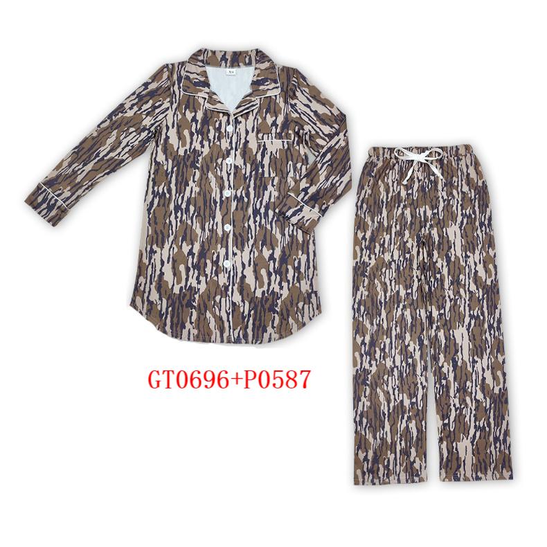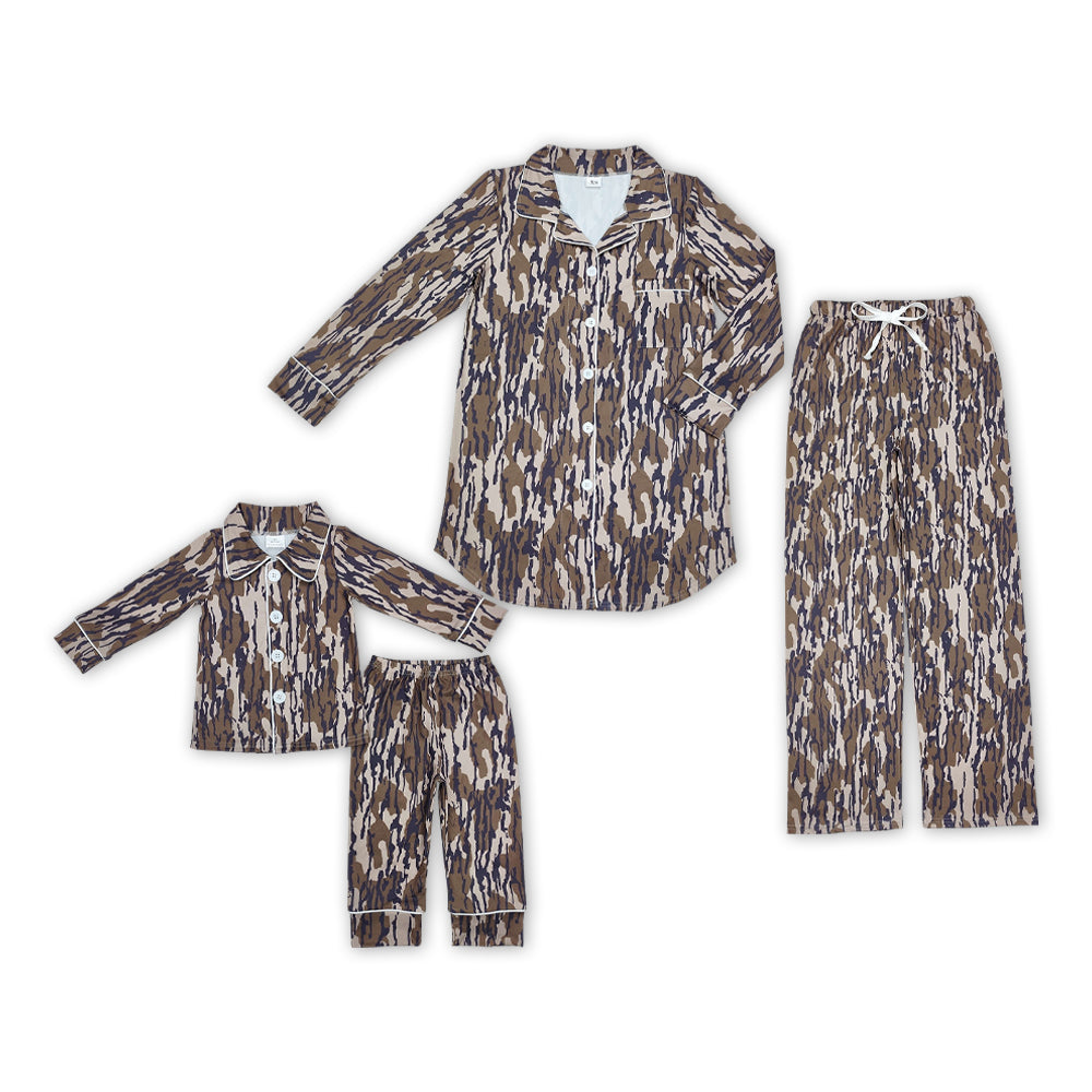 Camo Print Mom and Me Matching Fall Buttons Pajamas Clothes Set