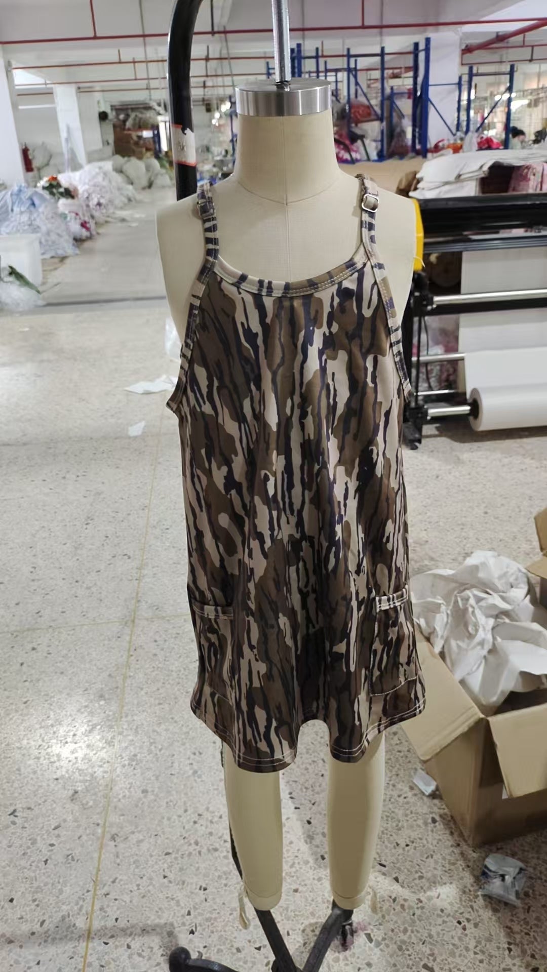 Camo Print Strap Pockets Mom and Me Summer Knee Length Yoga Dress