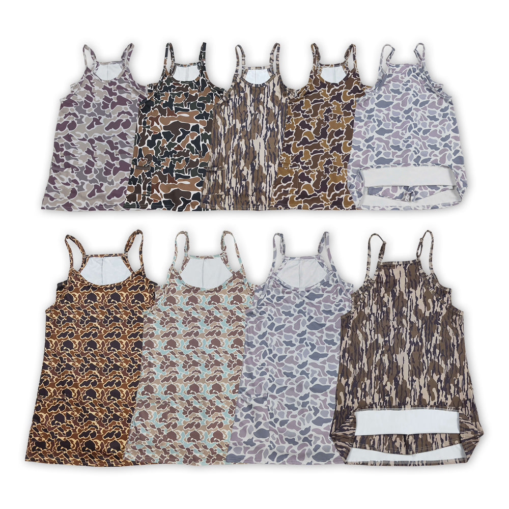 Camo Print Strap Pockets Mom and Me Summer Yoga Dress
