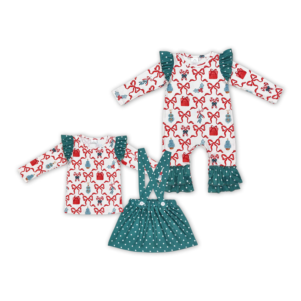 Candy Cane Bows Print Sisters Christmas Matching Clothes