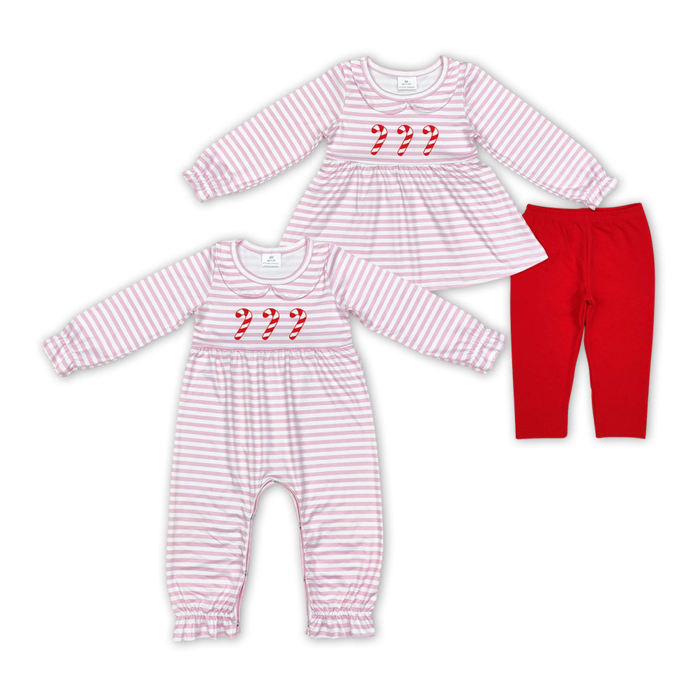 Candy Cane Stripes Print Sisters Christmas Matching Clothes
