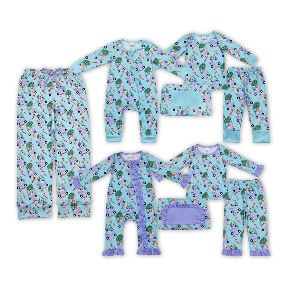 Cartoon Dog Candy Cane Print Family Christmas Pajamas Matching Clothes