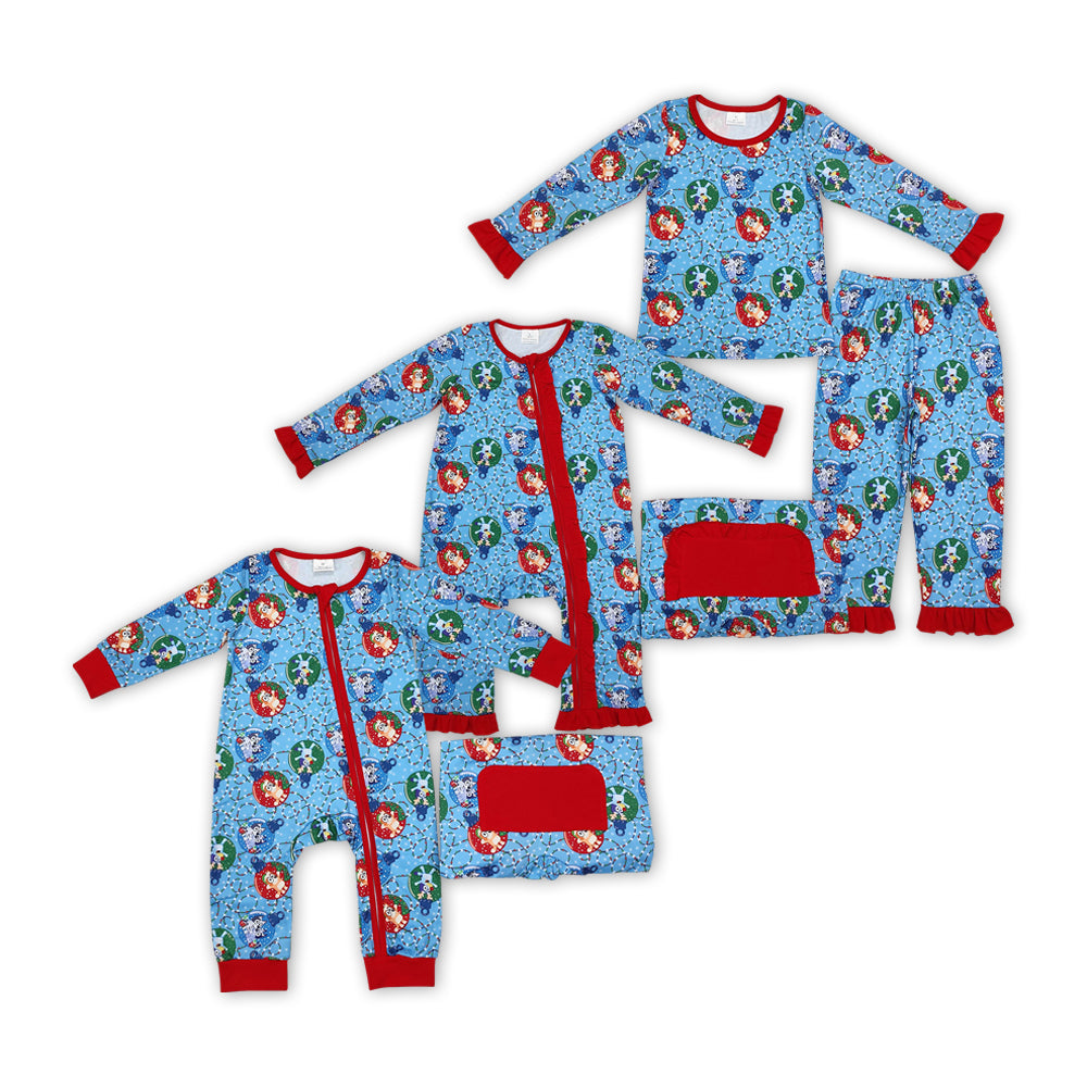 Cartoon Dog Christmas Lights Print Sibling Christmas Matching Clothes