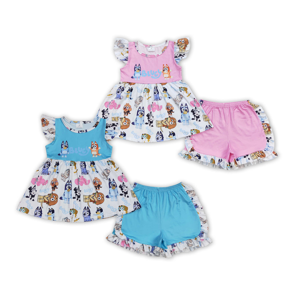 Cartoon Dog Girls Summer Clothes Set Sisters Wear