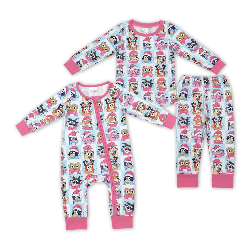 Cartoon Dog Pink Print Sisters Christmas Matching Clothes