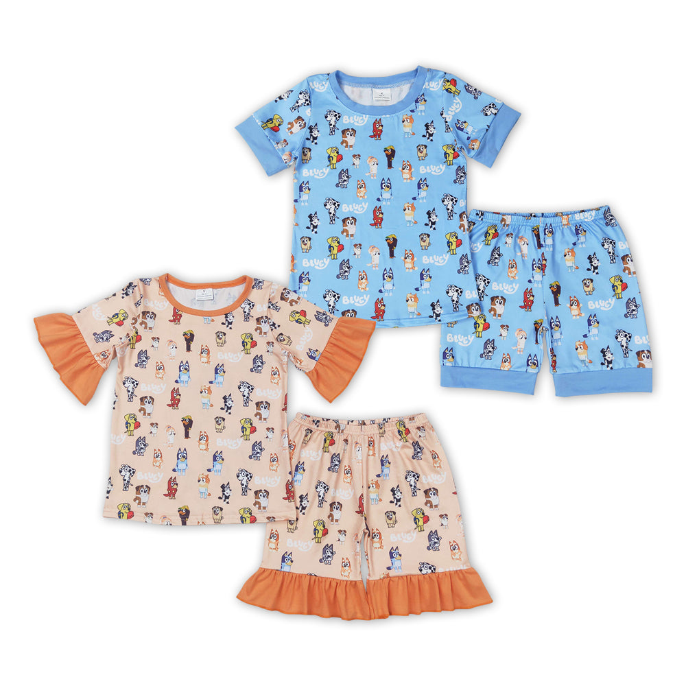 Cartoon Dog Print Sibling Summer Matching Pajamas Clothes Set