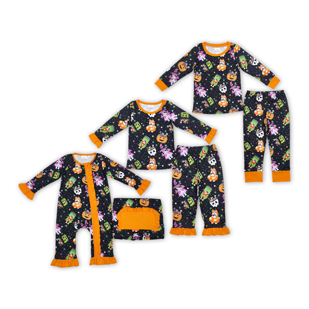 Cartoon Dog Pumpkin Print Sibling Halloween Matching Clothes