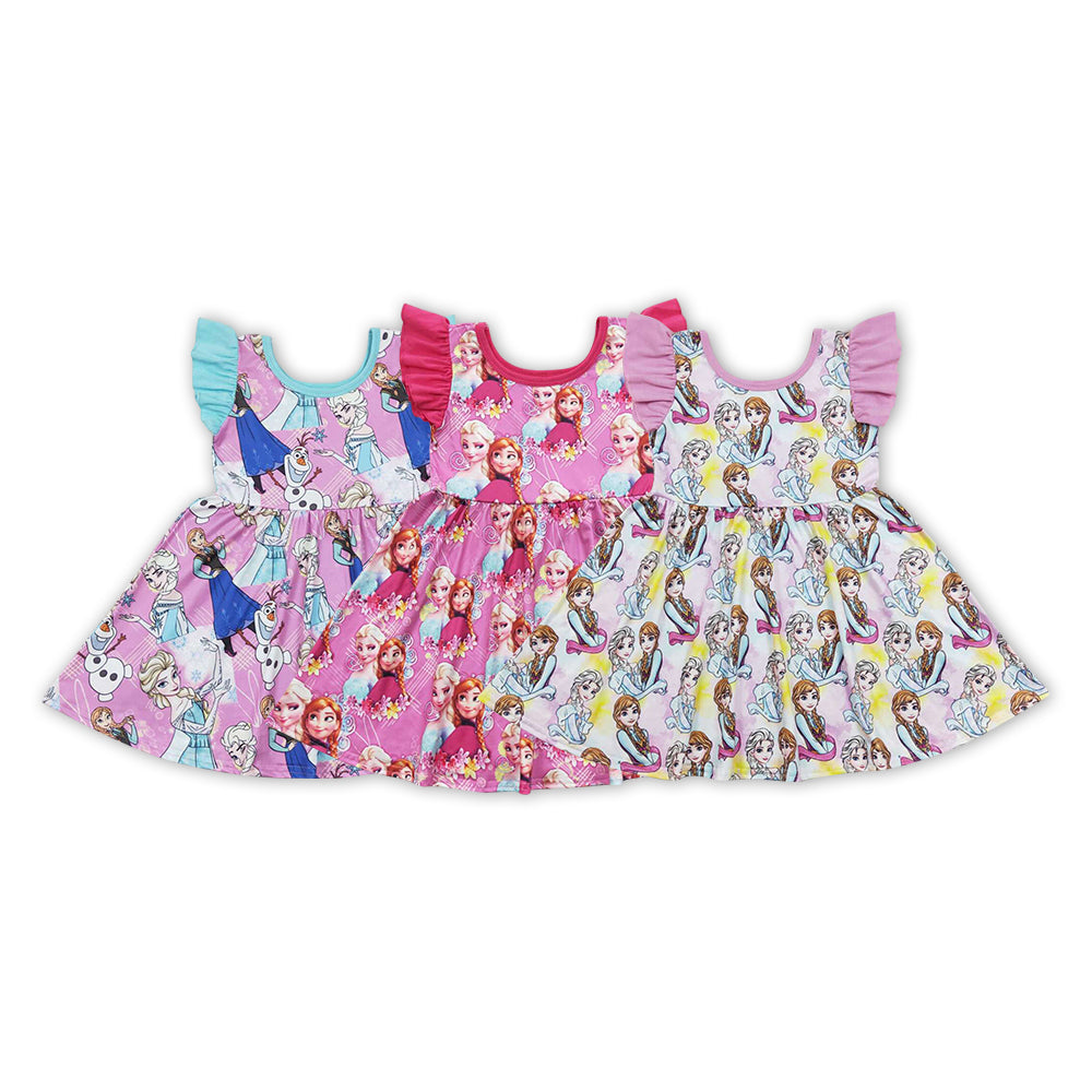 Cartoon Princess Print Sisters Summer Matching Dress